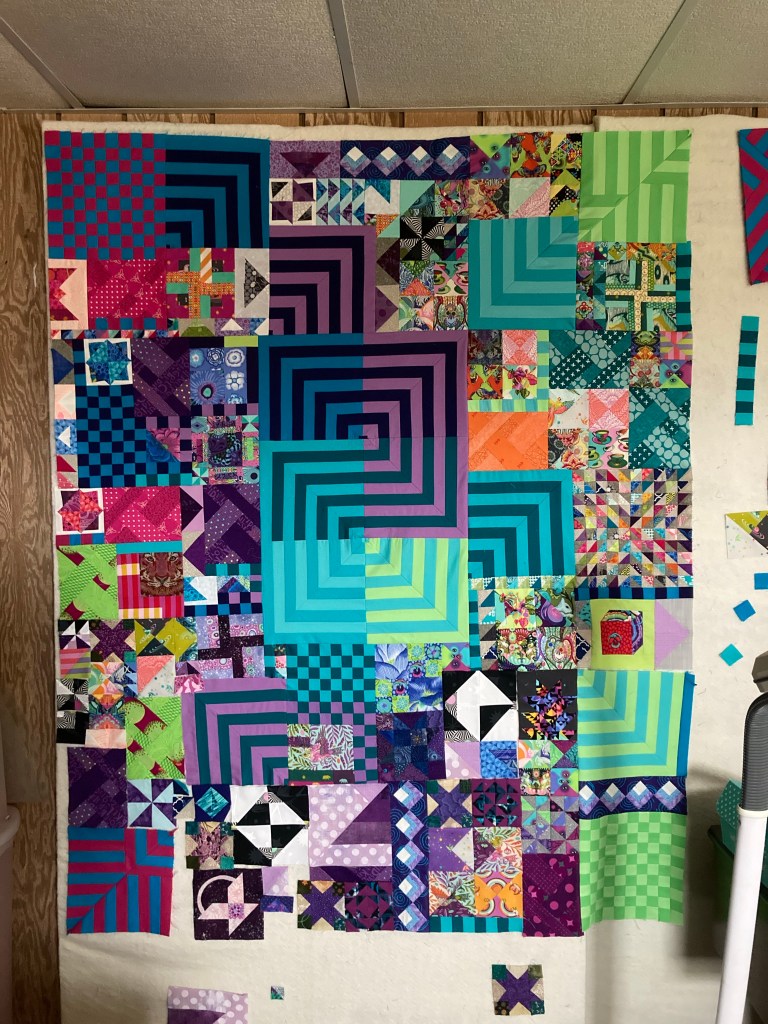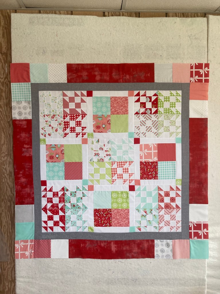 UPDATE: I basically DNF’ed this quilt. I didn’t like it when it was all done and wasn’t motivated to quilt it. So I mailed it to my friend Sharon so she could practice her free motion quilting.