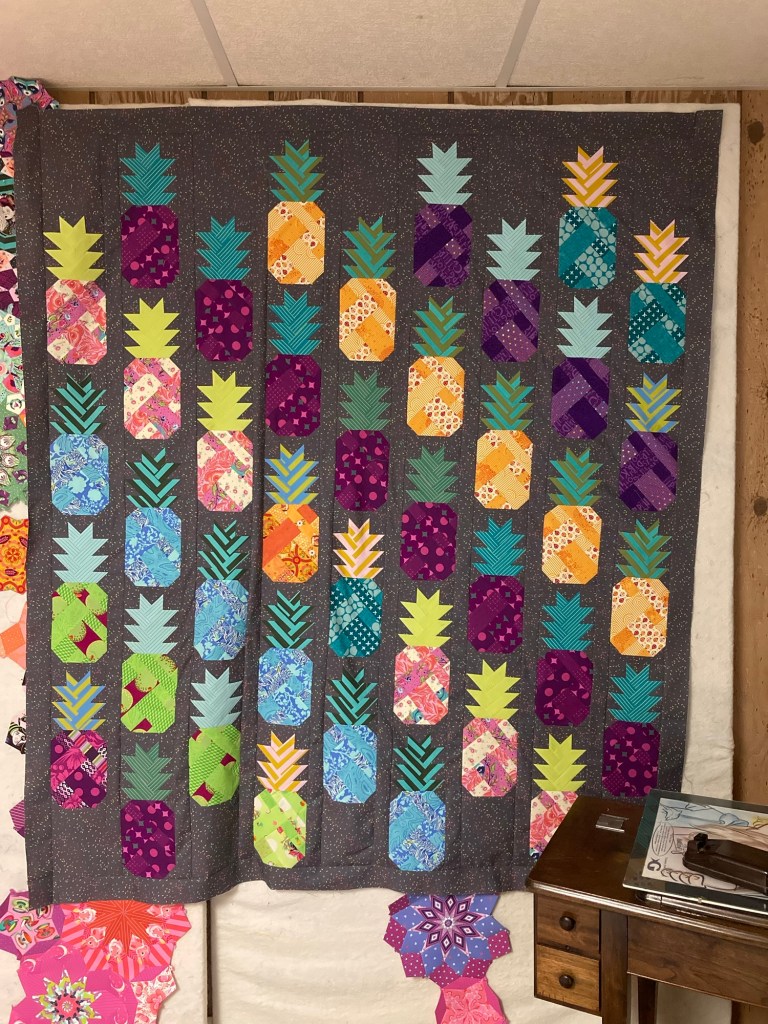 I made a quilt top to be the background for my work in the month of October. It is HUGE. I’m pretty sure I’m avoiding trying to quilt it because basting it is going to be awful.