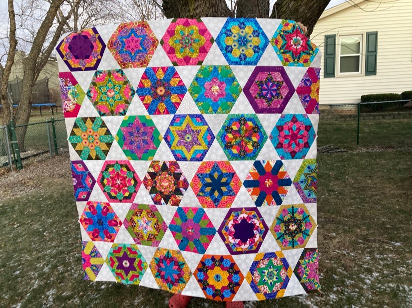 The year 2021 was the year of the block of the month. So I got to put together this beauty. I also managed to mis-read the pattern and trim my blocks to be too small and different sizes to I opted to add a border to the pattern.